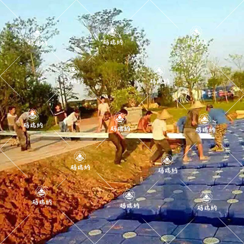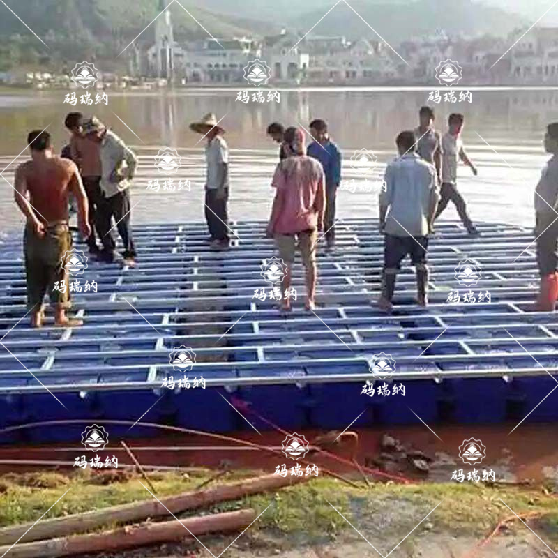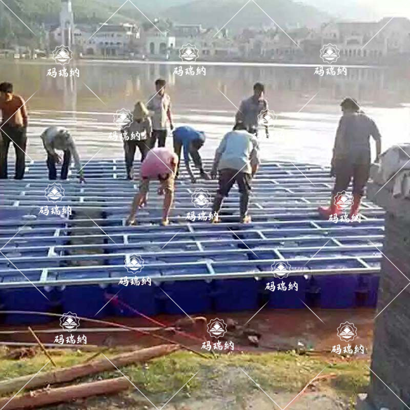 水上浮橋固定:這個(gè)是要看水深的,水深拋錨,水淺是打樁。...
